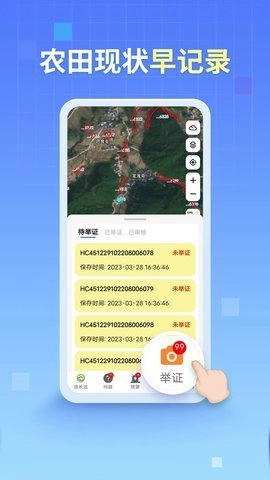 【上报】功能则可以让用户对自主发现的涉及耕地违法或违规行为进行拍照取证,并及时上传上报。