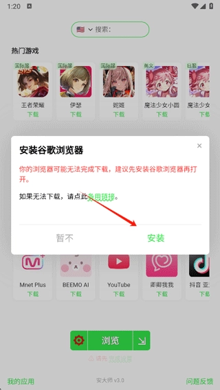 如果之前安装过导致闪退的安装包,建议不要随意卸载,以免出现账号丢失或数据损坏的情况。可以尝试通过安大师重新安装一次,这样大概率能解决问题并恢复正常使用。