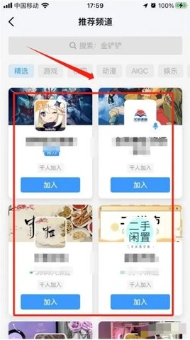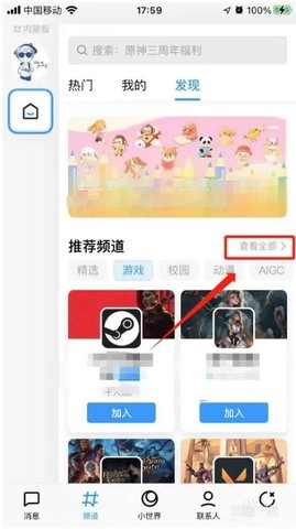 进入推荐频道,选择要加入的频道。