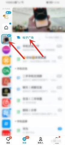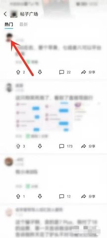 进入帖子广场,点击“发帖人头像”图标。
