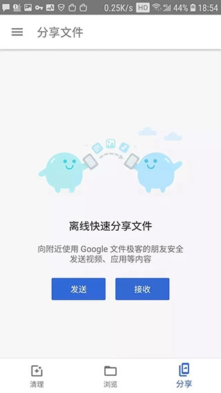 文件分享功能宣称速度最高能达到490Mbps,不过这需要对方同样使用文件极客,并且借助蓝牙与WIFI来完成加密传输,因此该功能支持离线使用。