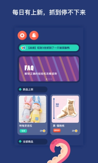 这款应用准备了各式各样的玩偶供大家挑选,不同类型的玩偶都能自由抓取,让你足不出户就能体验抓娃娃的乐趣。