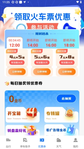 软件能自动识别铁路部门推出的限时优惠活动,而且其内部页面也自带专属优惠。