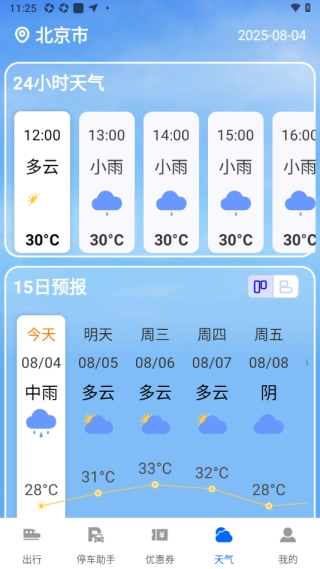 在安排外出行程时,了解天气动态至关重要。系统会依据用户当前所在地点,即时呈现近期的气象信息,以便人们能灵活调整出行计划。