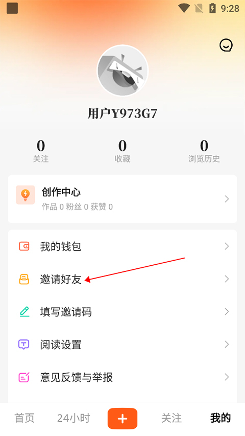 1、打开应用登录后,进入【我的】页面,找到并点击【邀请好友】选项。