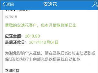 我们采用安逸花系统,该系统提供两种还款途径,分别为自动还款与主动还款。