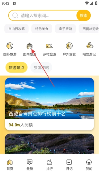 在国内旅游的内容列表页面,挑选你想要了解的景点攻略,点击进入该景点的详情页面。