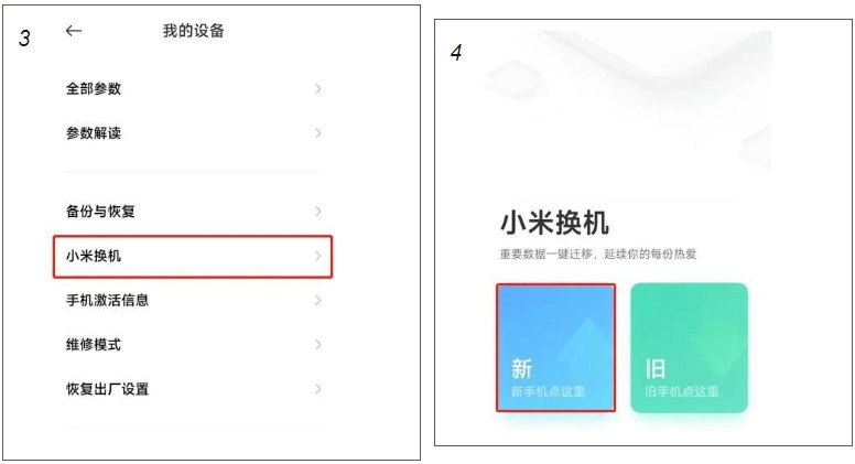 通过小米换机,快速将原手机数据和应用迁移至新手机。其中“小米换机”支持情况为:安卓系统手机可以支持图片、短信、彩信、联系人、通话记录、音频、视频、文档、应用的迁移,苹果手机仅支持图片、视频、联系人、日历日程的迁移。01旧手机安装【小米换机】在新手机上,点开【设置】选择【我的设备】,点击【小米换机】后,点【新】,选择旧机类型【小米】【安卓】和【苹果】,会弹出【小米换机】App的安装二维码,使用旧手机的浏览器扫描新手机上的安装二维码,选择安装即可。