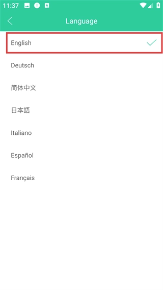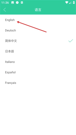 在语言选择界面点击【English】选项,即可把应用的显示语言切换成英文。