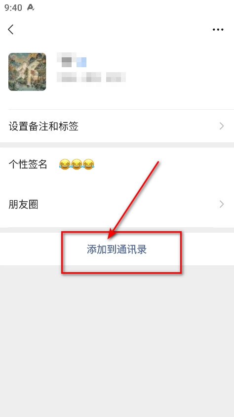 进入群聊后,点击好友的头像进入其个人界面,按照图示操作,添加对方到通讯录就可以了。