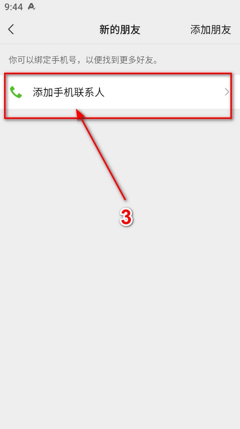 点击“添加手机联系人”选项进入相关页面,之后按照页面给出的提示操作,就能完成恢复添加的步骤了。