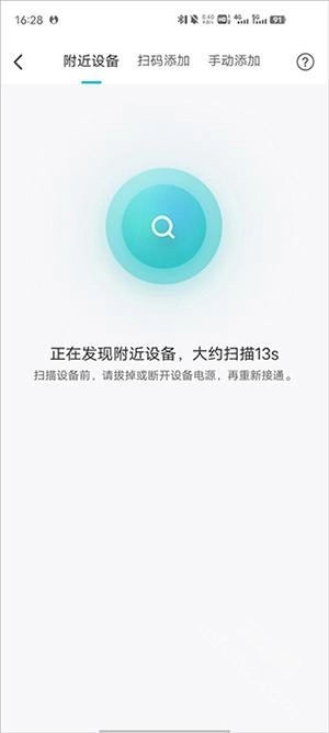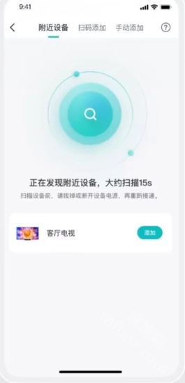 ③、请确认设备是否处于可配网状态,可将设备电源插座拔下后重新通电,或在App的添加设备界面选择“扫码添加”或“手动添加”选项,按照提示操作以激活设备的配网状态。