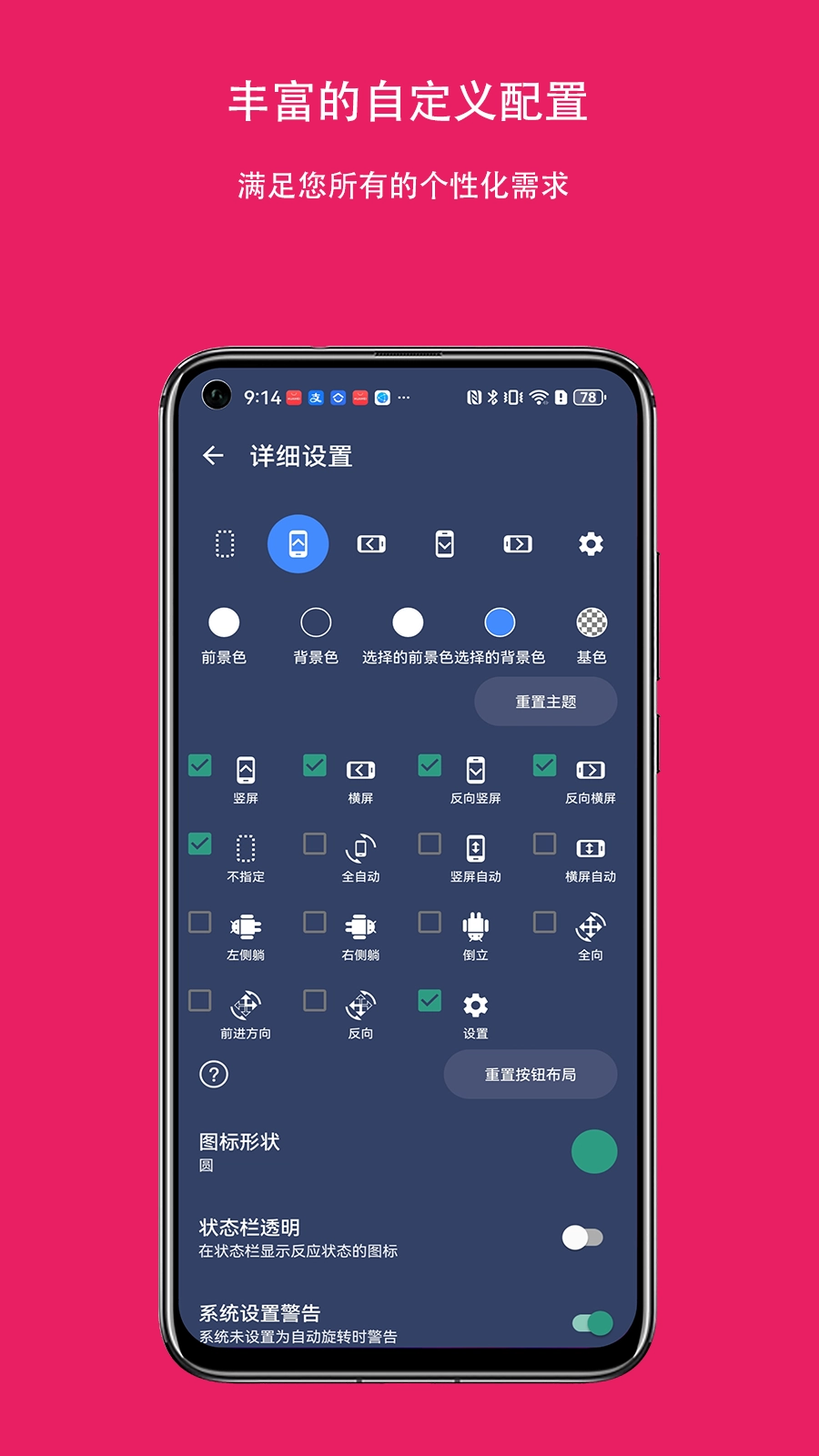 屏幕方向控制器是一款能让大家自由掌控手机屏幕方向的实用工具。不管是横屏、竖屏、反向横屏还是反向竖屏,都可以借助这款软件快速完成设置。它的手机版本适用于游戏、娱乐、办公等多种场景,能帮助用户自定义屏幕的旋转方向,以此满足不同的使用需求。