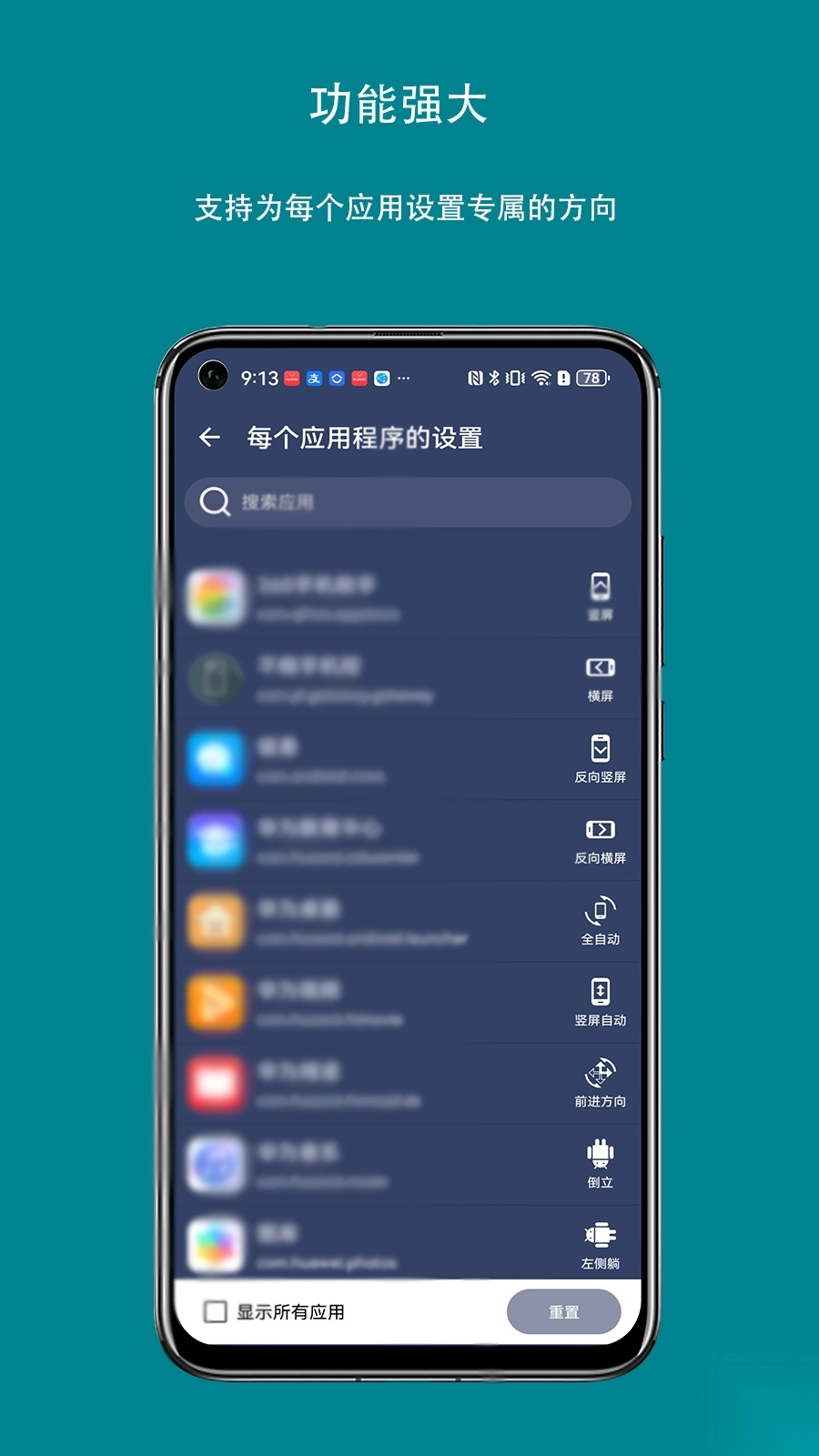 多种模式可选:用户能够依据自身使用习惯,自由选择竖屏、反向竖屏、横屏、反向横屏、竖屏自动、横屏自动等不同模式。