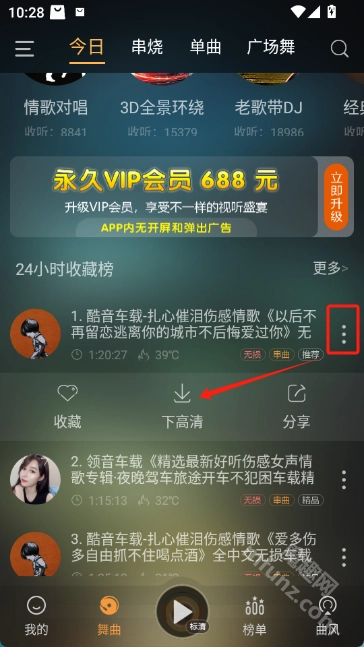 在快嗨dj手机版中,找到你想播放的歌曲,点击其右侧的【...】按钮,接着选择“下高清”选项就能获取该歌曲了。