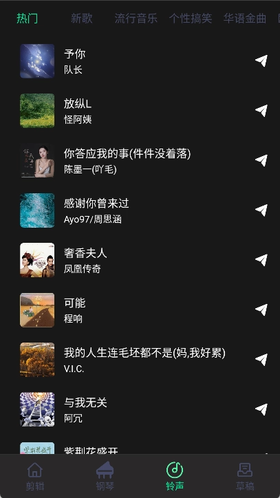 音乐提取功能:支持从本地存储的视频文件里提取出其中的音乐部分,这些提取出的音乐可以用来设置成手机铃声。
