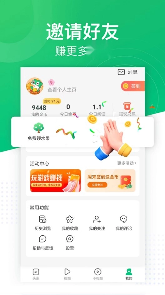 一、每日签到:在趣头条完成签到操作能得到对应的金币奖励,若保持连续签到还能获取更多金币。
