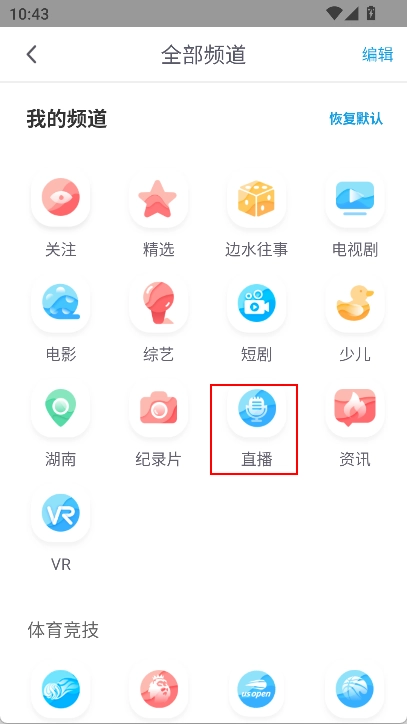 打开应用后,直播频道默认处于后台,需要点击【全部频道】才能找到。