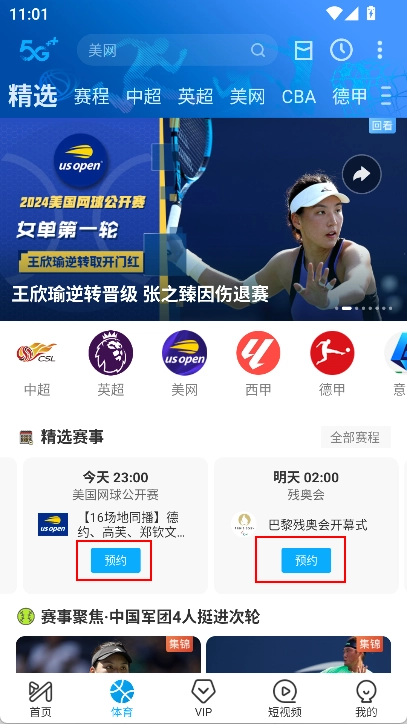 体育赛事板块操作步骤:进入“体育”分类 - 点击“赛程” - 选择“全部”赛事列表 - 找到目标赛事后点击“预约”。温馨提示:节目正式上线时,客户端会自动推送消息通知您,届时您可直接通过通知返回客户端内观看节目。
