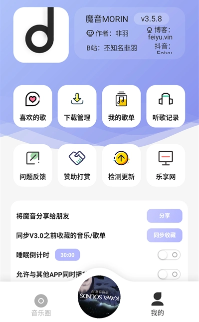 社交分享与睡眠定时功能:在界面上向下滑动,即可将软件分享给好友,还能设置睡眠倒计时,通过播放音乐帮助入眠。