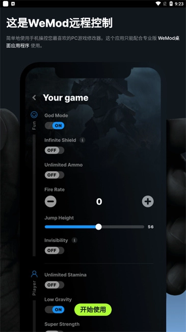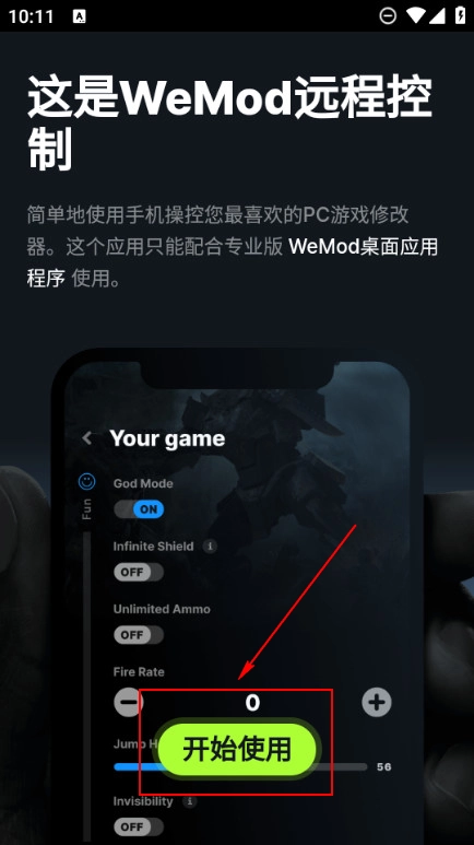 安装wemod手机版,点击开始使用