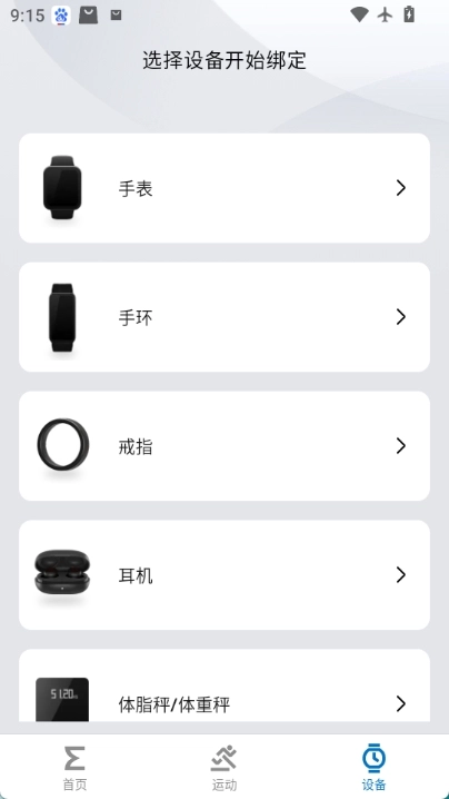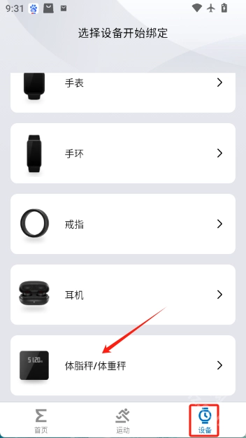 可以先挑选体脂称的具体型号,再按照提示步骤完成绑定;另外也能直接点击页面底部的“设备”选项,从中选择体脂秤或体重秤类别,接着依据后续提示进行操作,这样也能完成绑定流程。