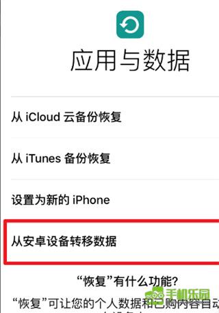 当iPhone激活流程进行到【应用与数据】这一步时,选择【从安卓设备转移数据】这个选项。