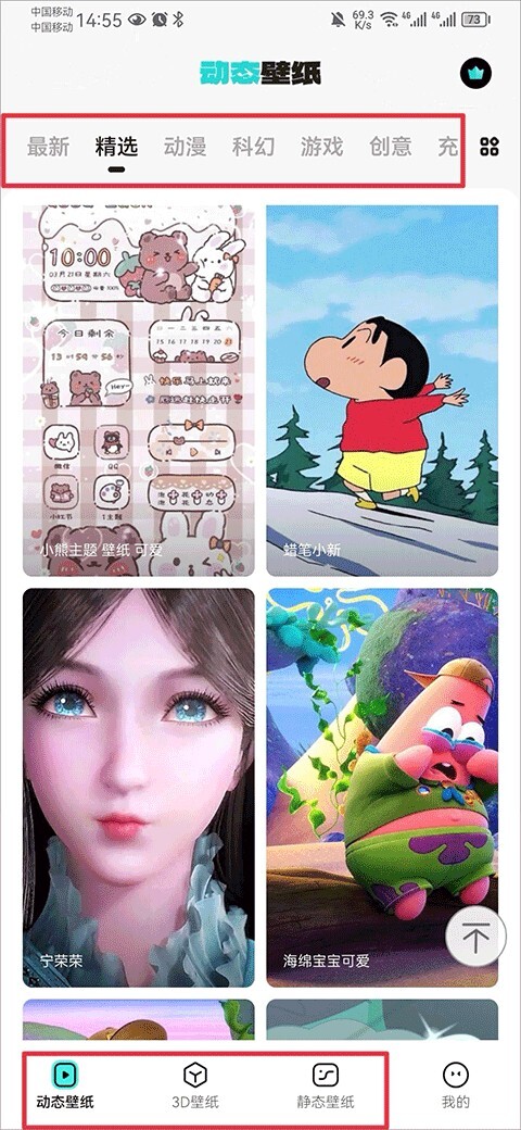 你可以根据自己的喜好挑选动态壁纸、3D壁纸或者静态壁纸,这里还提供了各种各样类型的壁纸供你选择。