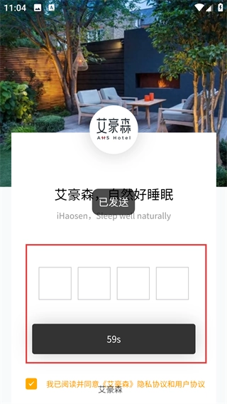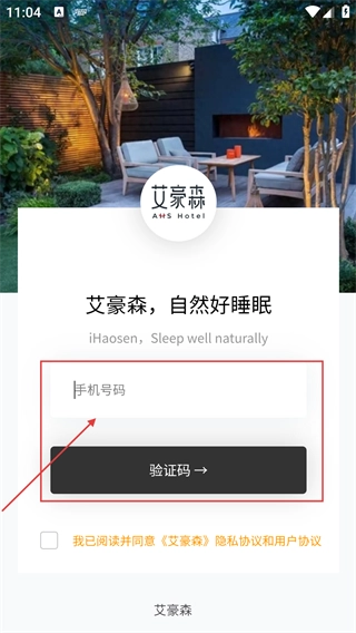 进入登录页面后,界面上会显示“艾豪森-自然好睡眠”的字样。接着,在“手机号码”对应的输入框中填写相关信息,之后点击“验证码”按钮来获取验证信息。