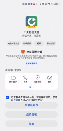 第三步,勾选“已了解此应用未经检测……”这一选项,接着点击“继续安装”。(若弹出安全提醒,无需担心)