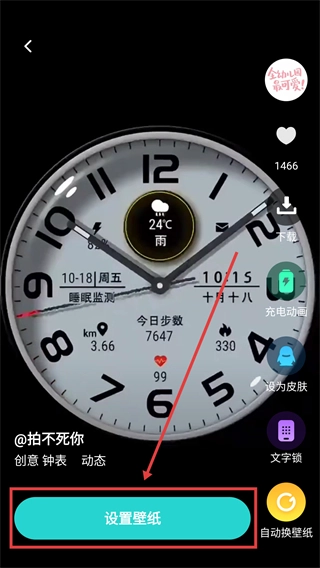 进入【创意钟表】详情页面后,点击底部的【设置壁纸】按钮,即可开启壁纸的设置流程。