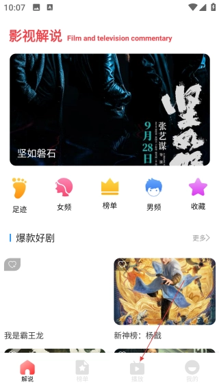在解说页面,点击底部的【播放】按钮,即可进入放映大厅的功能界面。