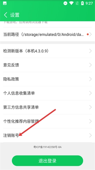 在设置界面里找到【注销账号】的选项并点击它,就能进入申请注销的流程页面,这个页面上还能看到版本检测之类的设置项目。