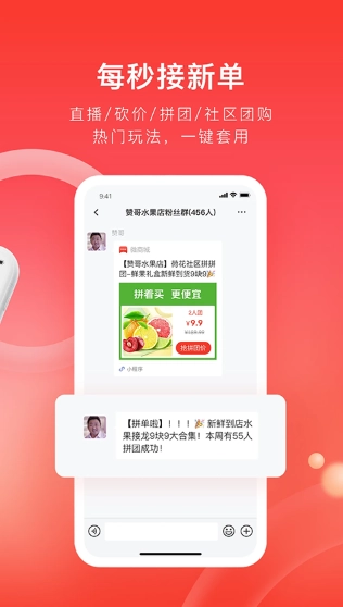多人团购、社区团购、销售人员、零元降价等近百种社会化营销策略,轻松掌握社会化病毒式增长,为您带来源源不断的订单和客户。