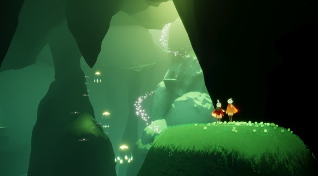 找到那些黄色的人影,和它们进行互动来收集“光之翼”,这样我们的飞行技能就能获得升级——斗篷背后星星的数量,正是我们飞行级别的象征。