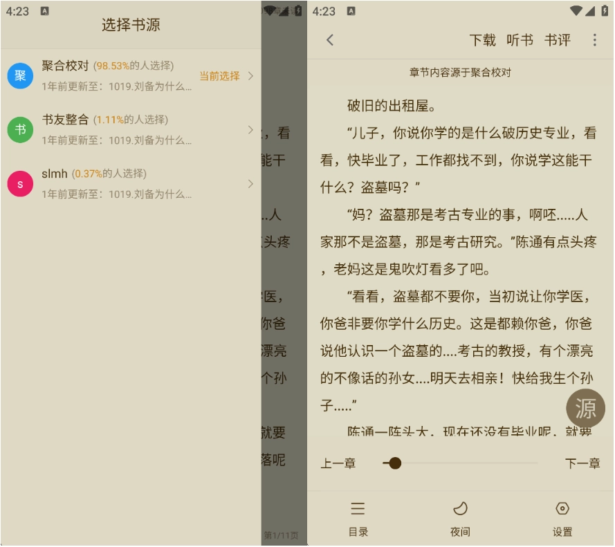 天天读书的免费阅读界面支持切换不同的显示风格和翻页方式,你可以找到最适合自己的舒适阅读状态。