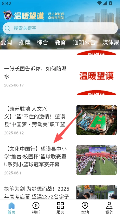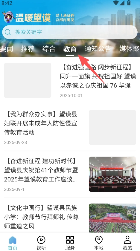 《温暖望谟》作为一款聚焦本地的资讯类应用,设有首页、视听、服务、本地、我的等核心板块。其中首页进一步细分要闻、推荐、综合、教育等内容分类,教育分类专区专门呈现本地相关资讯,涵盖各类活动、节日等主题内容。用户点击任意资讯即可进入详情页面,既能阅读文字信息,也能观看配套视频,视频支持播放与暂停功能。该应用全面覆盖本地用户对各类资讯的获取需求,让大家了解本地信息更轻松便捷,精准适配本地生活场景下的信息获取习惯,有效提升资讯浏览的针对性和效率,充分满足用户查看本地资讯的核心诉求,帮助大家及时掌握本地各类动态信息。