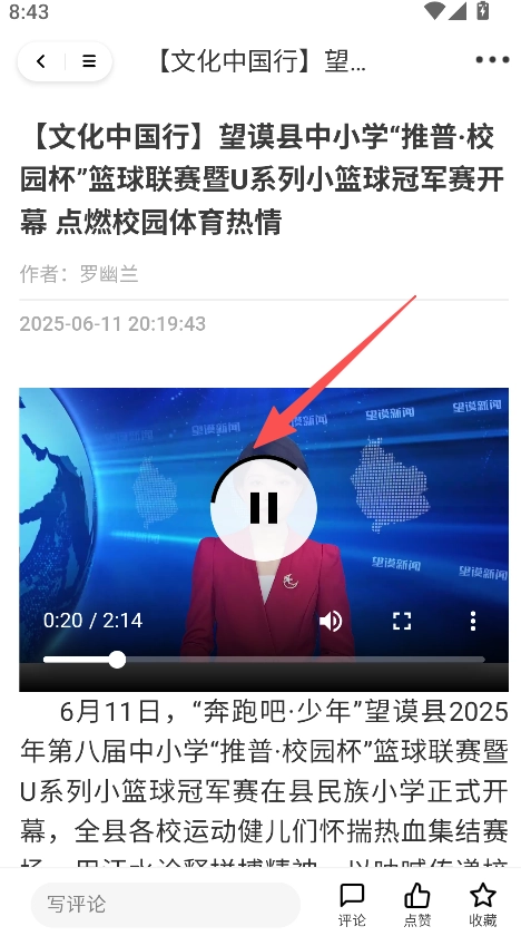 视频支持播放暂停操作,用户在资讯详情页就能直接控制视频的播放状态,以此满足资讯内视频内容的浏览需求。