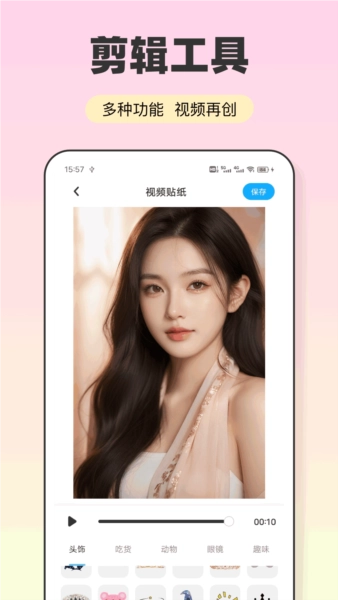 这款软件除了具备视频剪辑功能外,还提供定制壁纸、DIY头像等实用功能。
