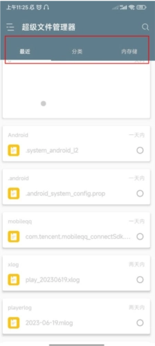 re文件管理器的使用方法 1、打开软件后,能够查看最近文件、文件分类以及手机的内部存储内容;