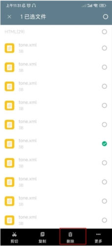 3、若要删除某一项文档,只需选中文档后点击底部的删除按钮即可。