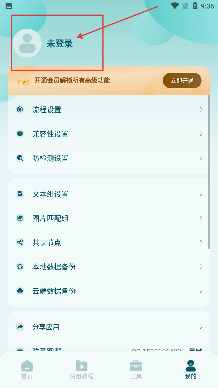 进入个人中心后,点击【未登录】区域即可进入登录界面。