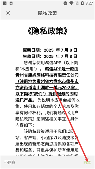 1、进入《隐私政策》页面,仔细阅读条款内容后,点击【同意】按钮,即可继续进行应用的后续操作流程。
