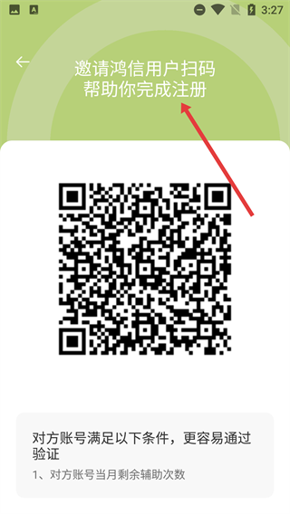4、进入邀请验证页面后,请让已注册的鸿信用户扫描该页面上的二维码,以此完成注册所需的辅助验证步骤。