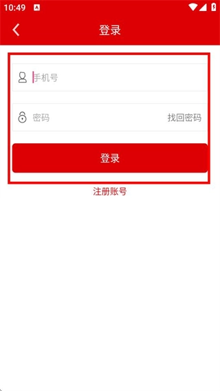 3、进入登录页面后,输入手机号与密码,再点击登录按钮,即可完成登录操作。