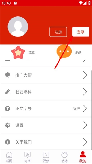 2、在个人中心页面,点击登录选项,进入登录页面。