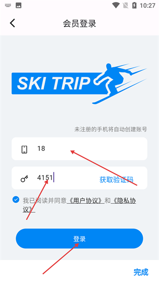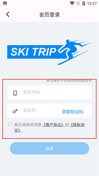 4、进入【会员登录】页面后,填写手机号和验证码,勾选相关协议,再点击【登录】按钮,就能完成账号登录操作;若使用的是未注册过的手机号,系统会自动为其创建新账号。