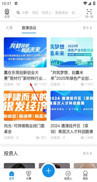 4、登录系统后回到首页,切换到路演活动分类板块,查看并浏览该分类下各类路演活动的相关内容。