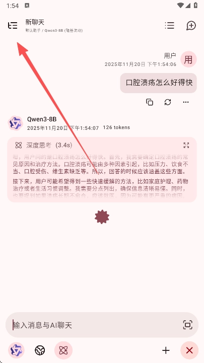 1. 打开RikkaHub应用,点击左上角的按钮以展开侧边栏