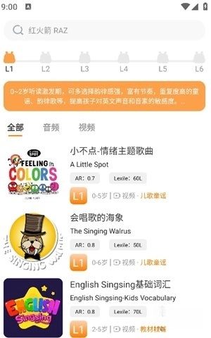 2、首页会智能推荐适合不同年龄段的分级课程以及有趣的音视频资源,让你能够轻松开始每日的学习。